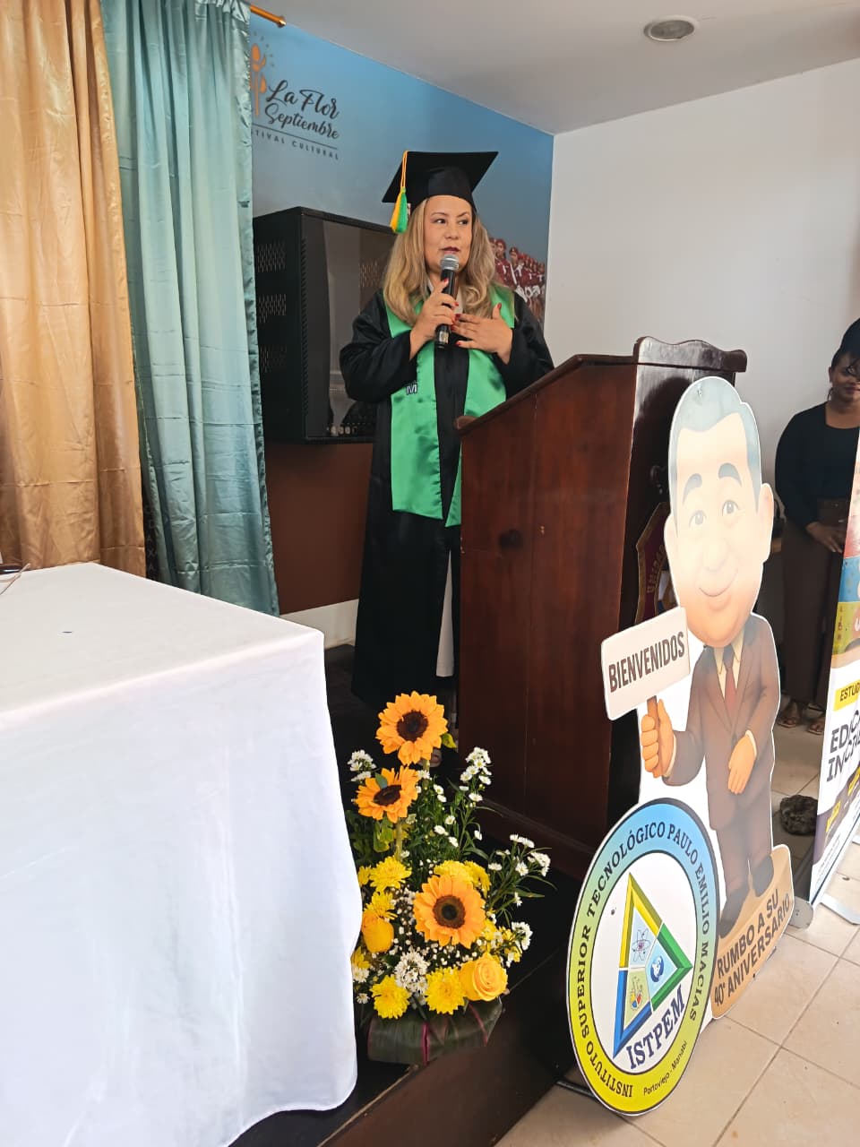 El acto académico, llevado a cabo en el Auditorio de la Unidad Educativa Olmedo, contó con la distinguida presencia de autoridades del Ministerio de Educación, Deporte y Cultura, representantes de la Gobernación y las máximas autoridades del Instituto ISTPEM, quienes respaldaron este logro significativo para la educación técnica en la región.